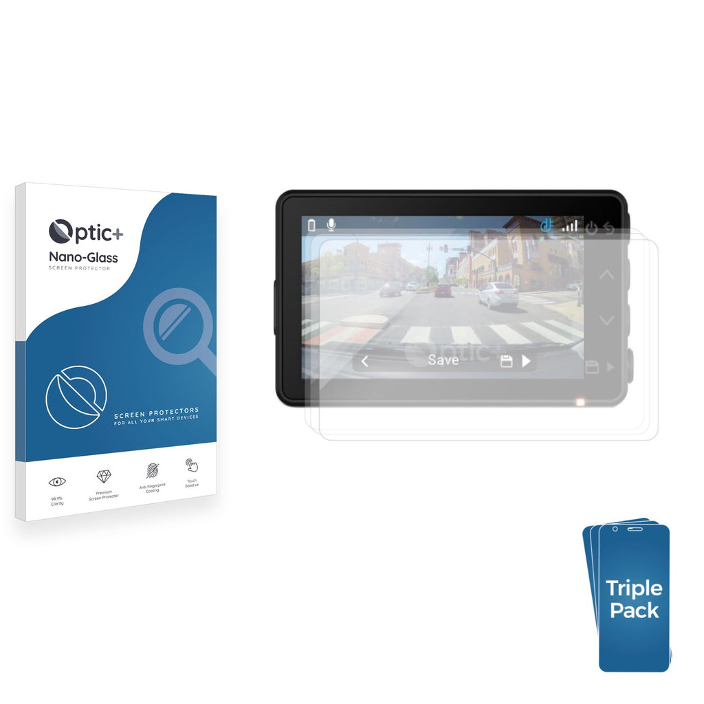 - Three Pack Optic+ Nano-Glass Screen Protectors for Garmin Dash Cam X110