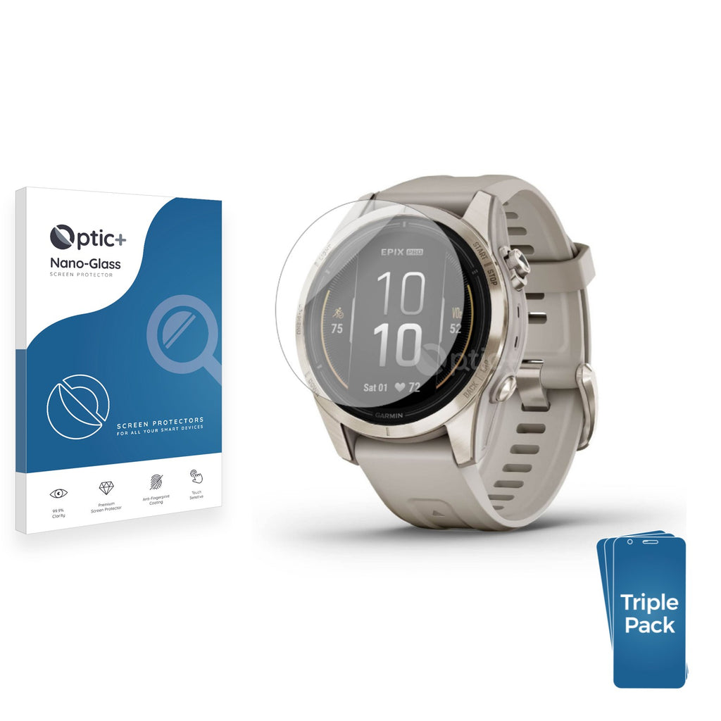 - Three Pack Optic+ Nano-Glass Screen Protectors for Garmin Epix Pro (Gen 2) (42 mm)