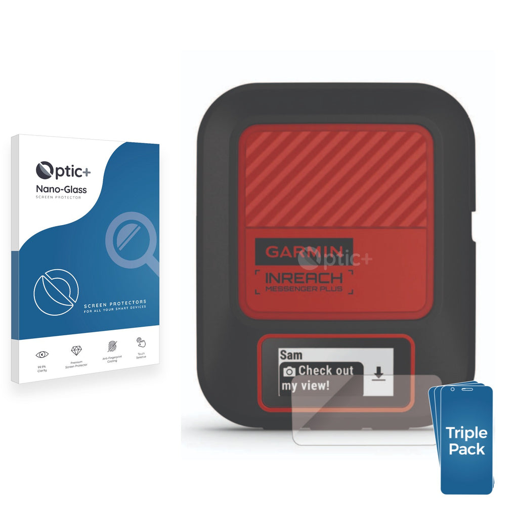 - Three Pack Optic+ Nano-Glass Screen Protectors for Garmin inReach Messenger Plus