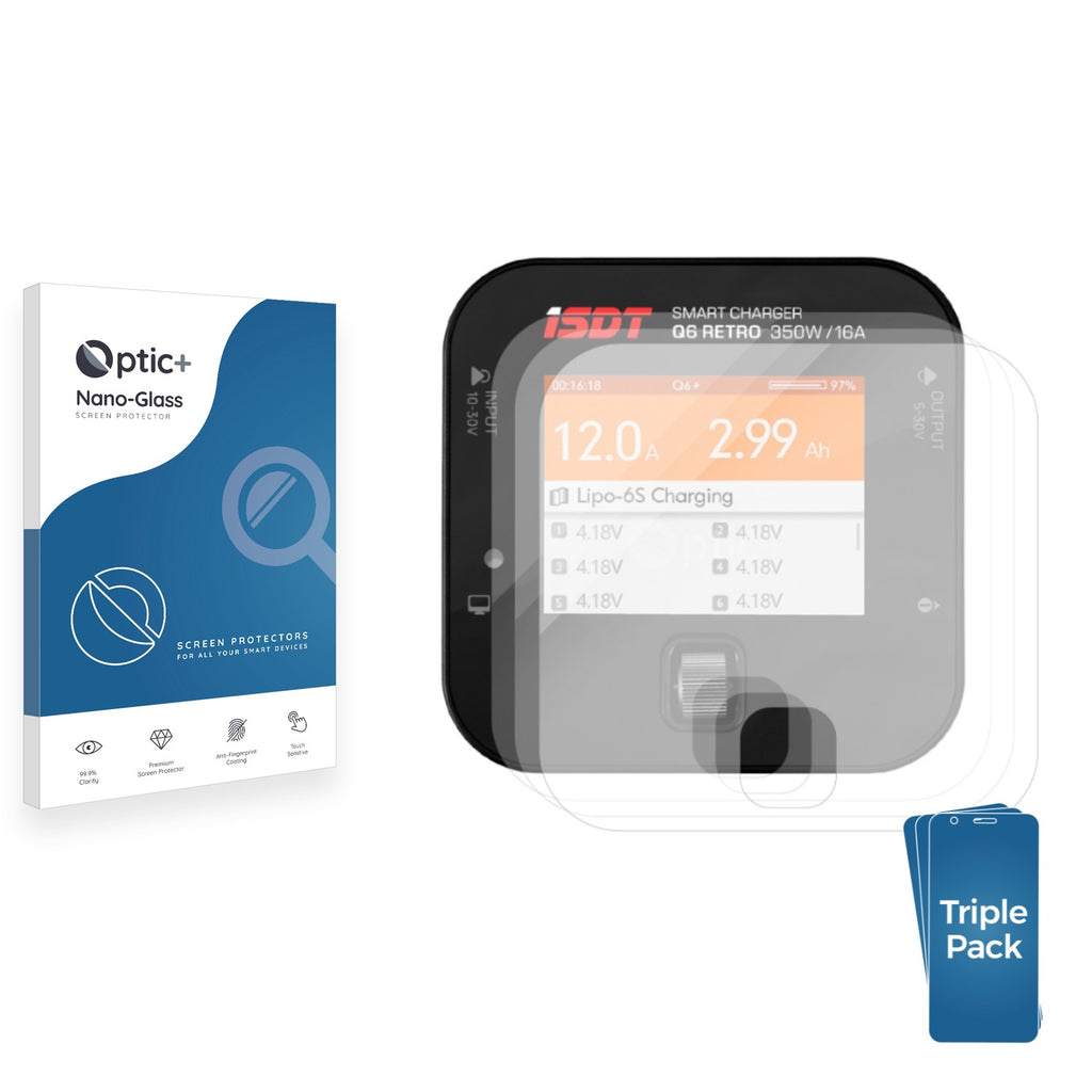 • Three Pack Optic+ Nano-Glass Screen Protectors for ISDT Q6 Retro