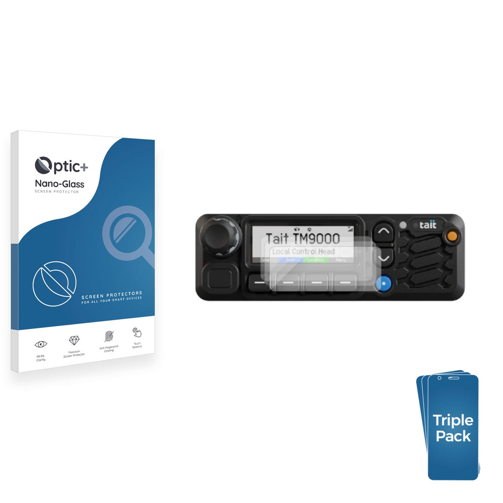 • Three Pack Optic+ Nano-Glass Screen Protectors for Tait TM9000
