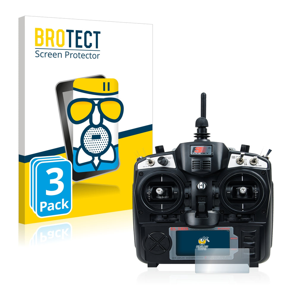 Matte Finish, Anti-Glare Screen Protector. Thin, light and super-strong, this anti-glare screen protector is the ultimate companion for your device. Its Ultra-Light properties and High-Transparency ensure you have a clear, unobstructed and sharp view of the display, while maintaining touch-screen and multi-touch sensitivity. The surface of the glass screen protector is matte and therefore reduces annoying reflections on your display, while providing a unique touch-screen sensitivity. An additional Anti-Fingerprint layer helps prevent dirt and fingerprint smears. The adhesive layer ensures that the screen protector glides smoothly and effortlessly onto your FlySky FS-TH9X for a bubble-free, easy installation. Please note: Because of the curved edges of some displays, some of our protectors are cut deliberately slightly smaller than the display.Ships With: