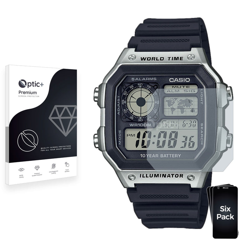 - Six Optic+ Premium Film Screen Protectors for Casio AE-1200WH-1CVEF