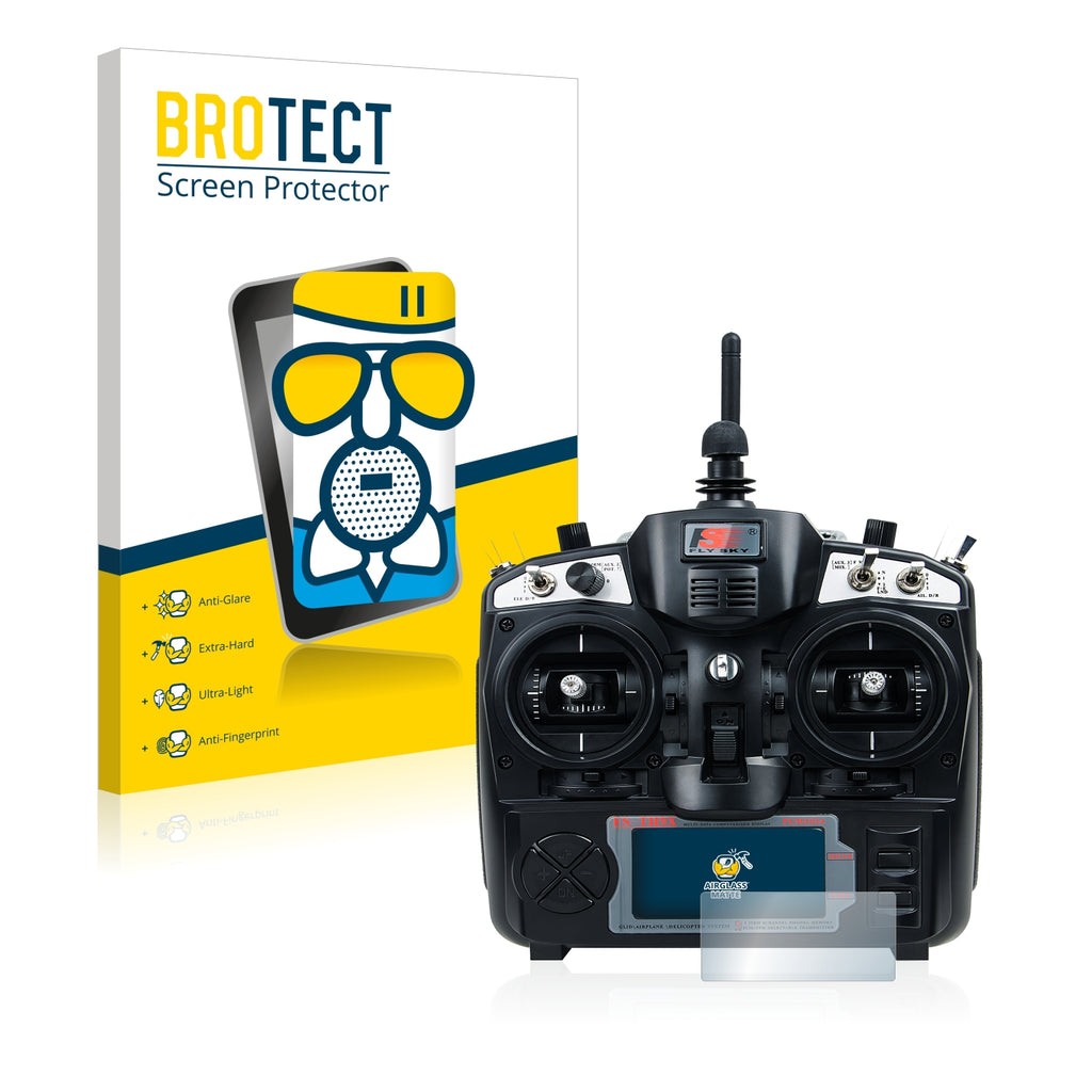 Matte Finish, Anti-Glare Screen Protector. Thin, light and super-strong, this anti-glare screen protector is the ultimate companion for your device. Its Ultra-Light properties and High-Transparency ensure you have a clear, unobstructed and sharp view of the display, while maintaining touch-screen and multi-touch sensitivity. The surface of the glass screen protector is matte and therefore reduces annoying reflections on your display, while providing a unique touch-screen sensitivity. An additional Anti-Fingerprint layer helps prevent dirt and fingerprint smears. The adhesive layer ensures that the screen protector glides smoothly and effortlessly onto your FlySky FS-TH9X for a bubble-free, easy installation. Please note: Because of the curved edges of some displays, some of our protectors are cut deliberately slightly smaller than the display.Ships With: