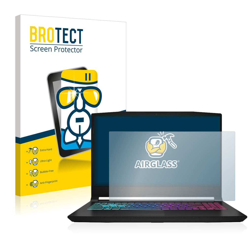 Nano Glass AirGlass, exclusively offered by BROTECT It's 2x thinner and lighter than tempered glass protectors and more flexible than all other glass protectors on the market, while still offering super strong anti-scratch hardness of thicker tempered screen protectors. Its Ultra-Light properties and High-Transparency ensure you have a clear, unobstructed, sharp view of the display, while maintaining touch-screen and multi-touch sensitivity. An additional Anti-Fingerprint layer helps prevent dirt and fingerprint smears. The adhesive layer ensures that the screen protector glides smoothly and effortlessly onto your MSI Katana 15 B12 for a bubble-free, easy installation. Please note: Because of the curved edges of some displays, some of our protectors are cut deliberately slightly smaller than the display.